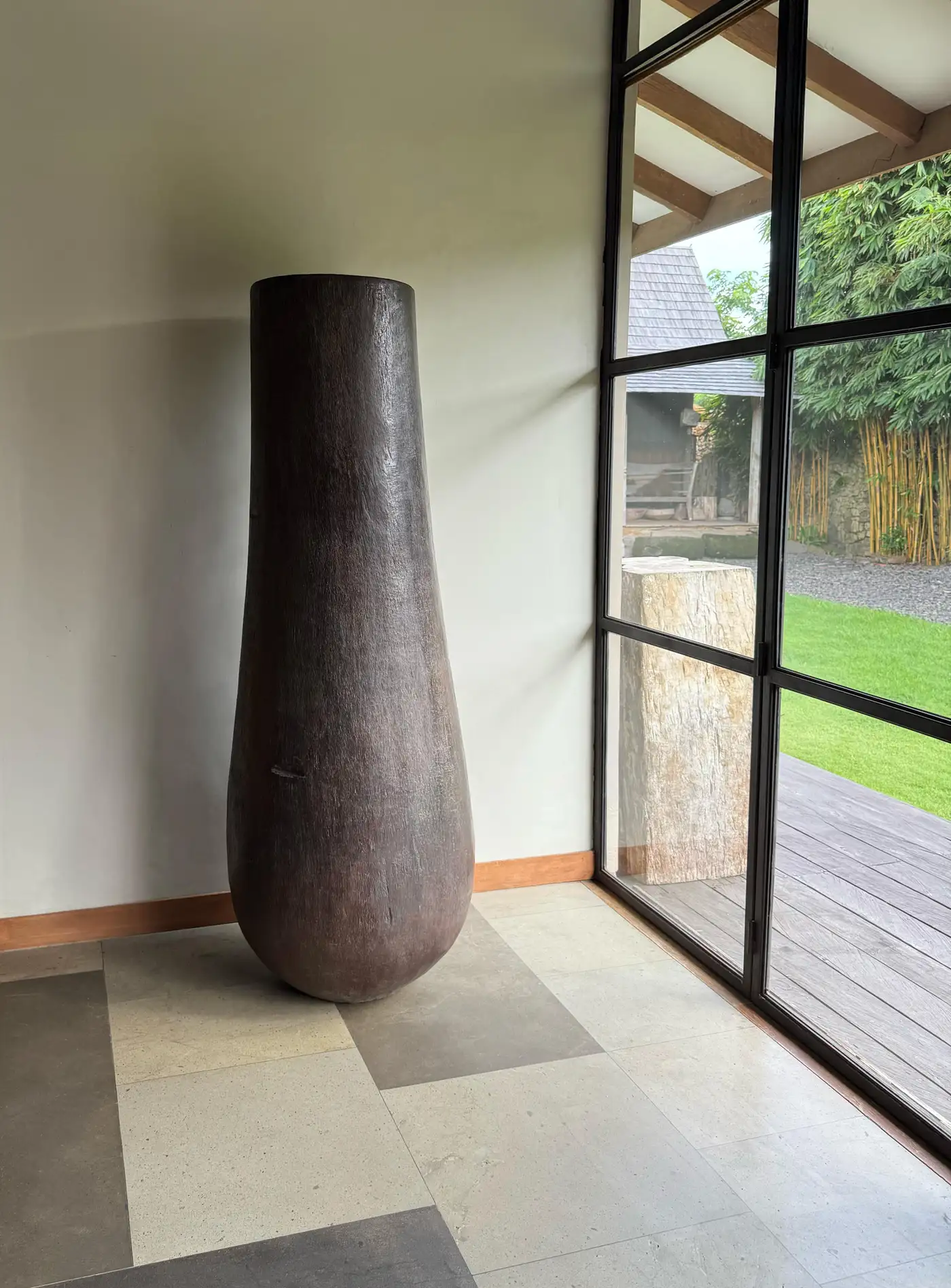 Extremely Large Vintage Sculptural Palm Wood Planter, Modern Organic