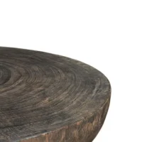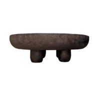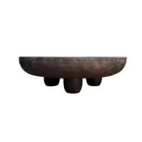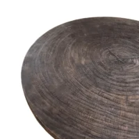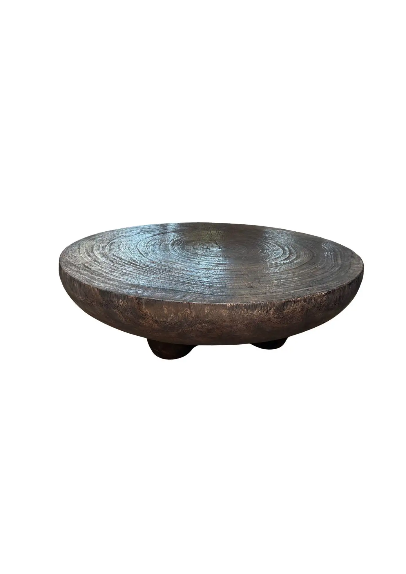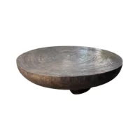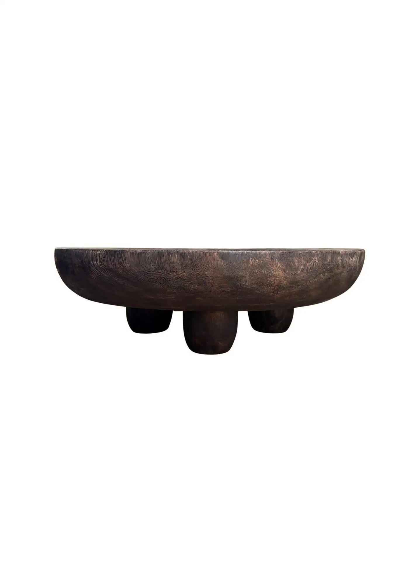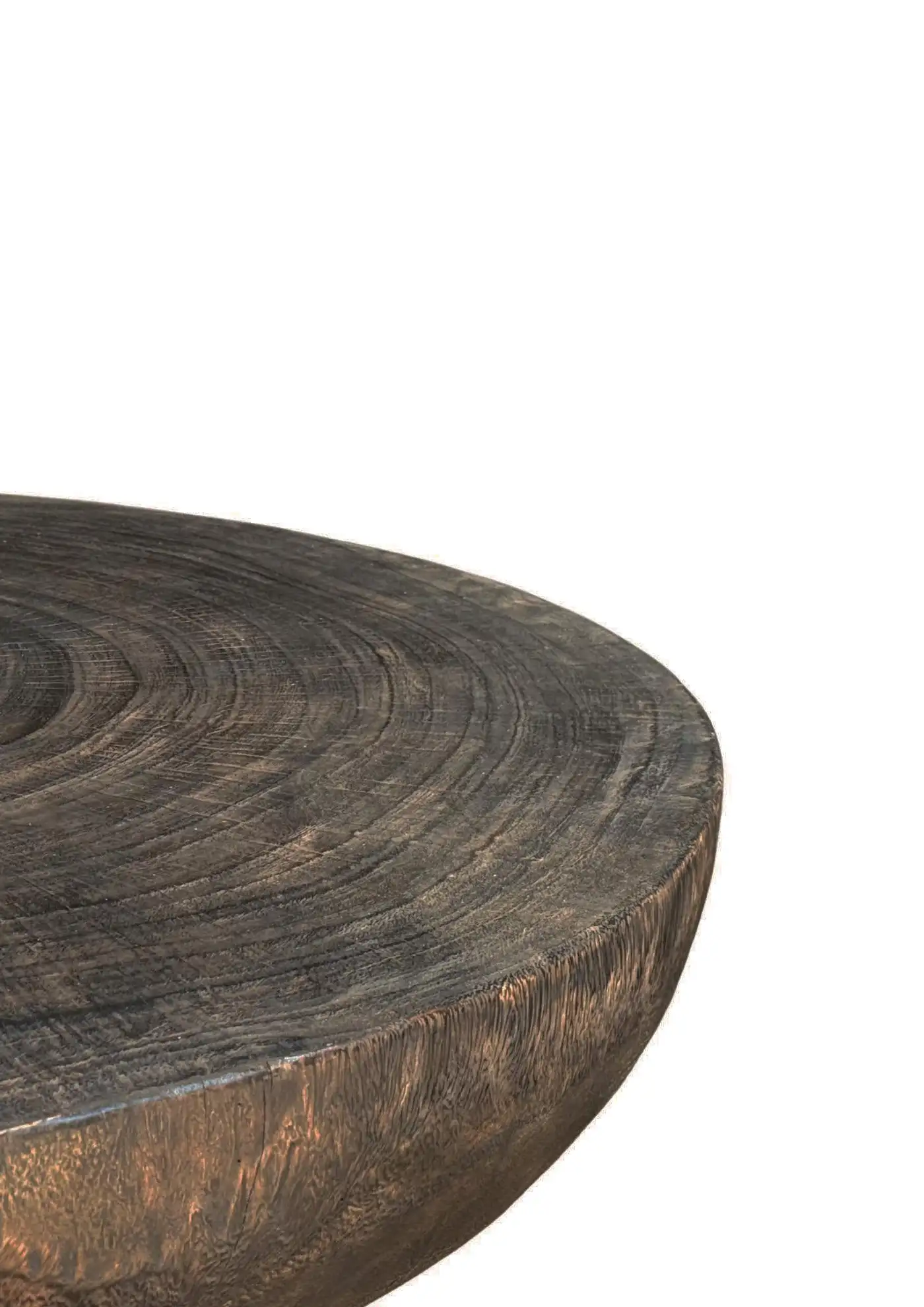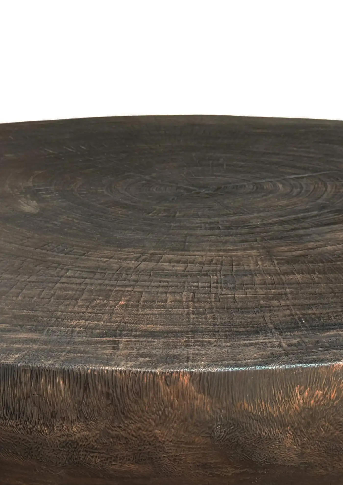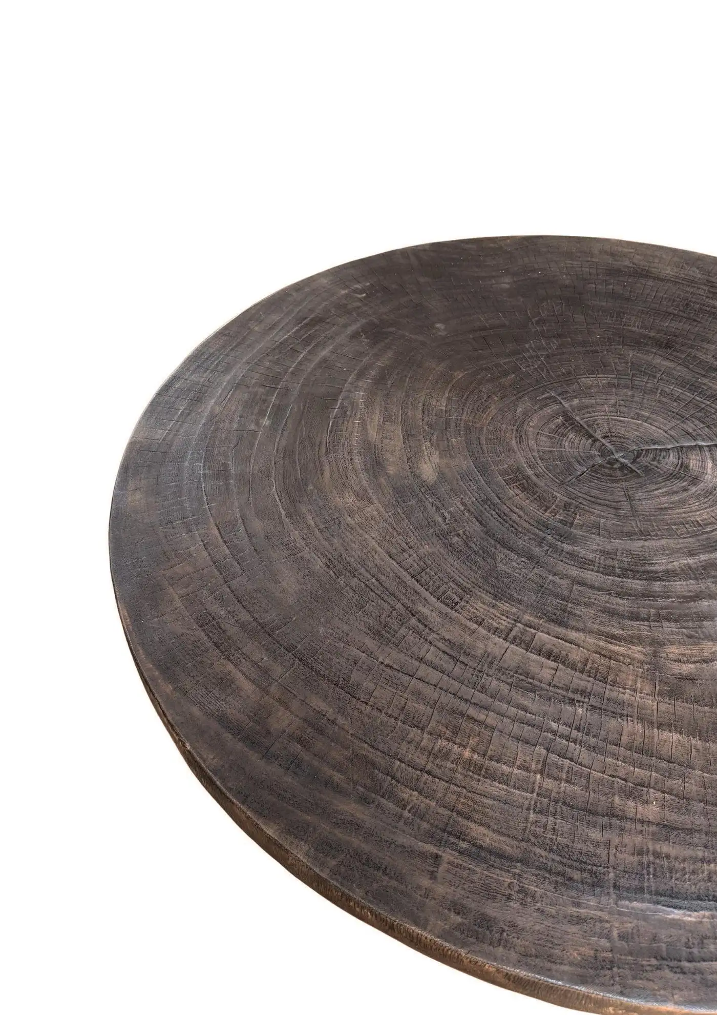 Make a bold, grounded statement with this Large Suar Wood Round Table, expertly handcrafted from solid Suar wood and finished in a richly layered “Espresso” tone. The deep, dark hue is achieved through a traditional multi-burning technique that enhances the natural depth and grain of the wood, giving each piece a uniquely dramatic character. Its substantial round top features a beautifully curved edge profile, resting on four solid, rounded legs that lend a sculptural presence. This design brings together organic form and raw elegance, making it an ideal centerpiece for interiors that blend rustic, contemporary, or wabi-sabi aesthetics.