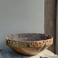 Monumental Early 20th Century Teak Burl Wood Bowl, Modern Organic