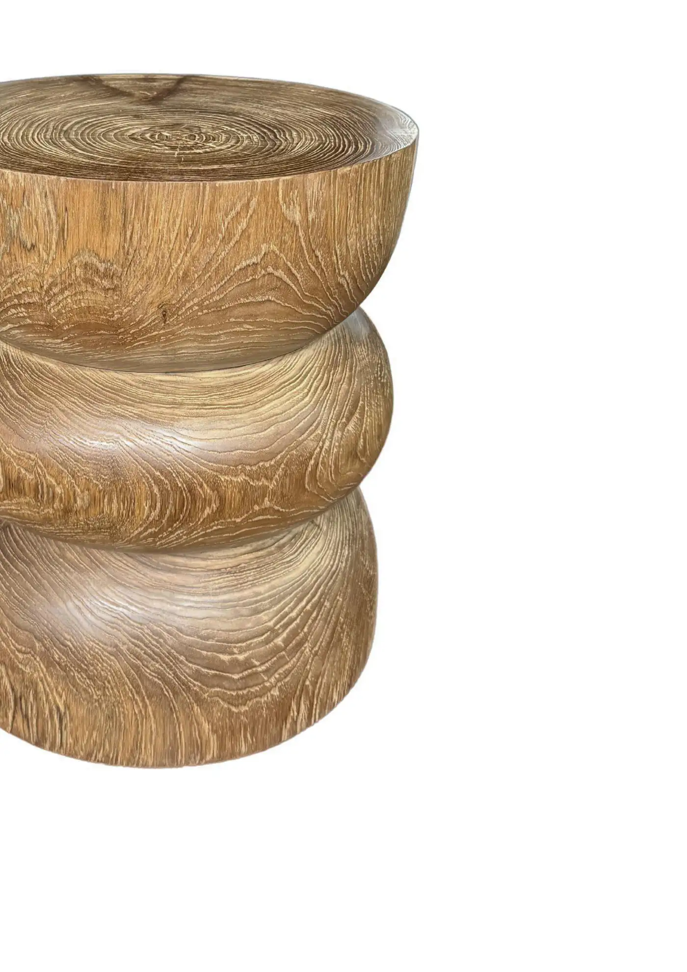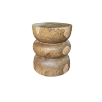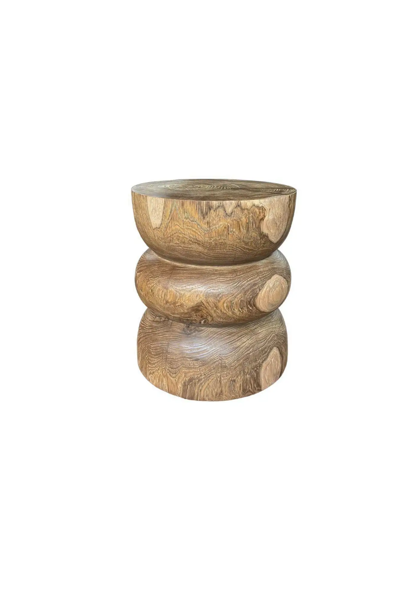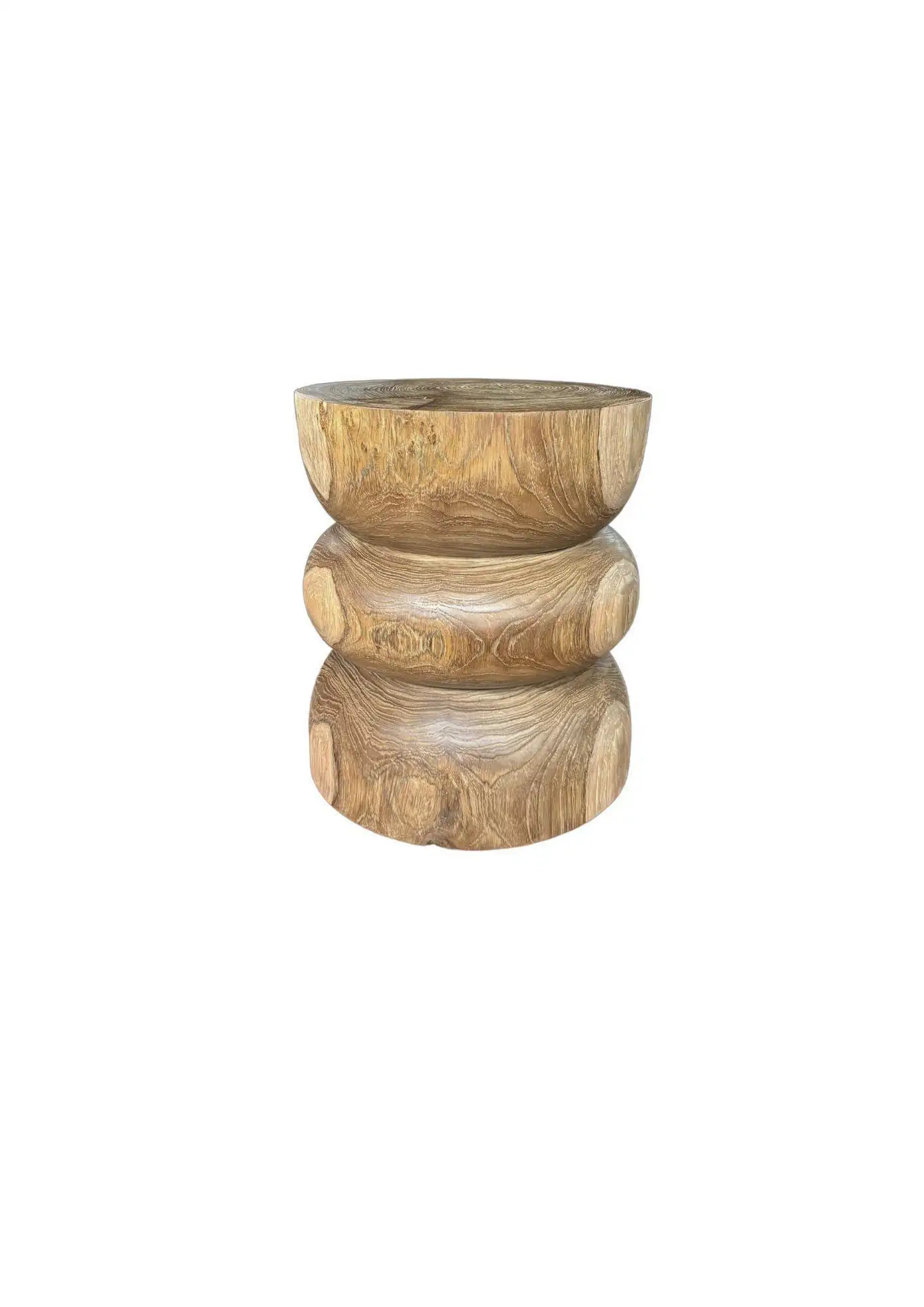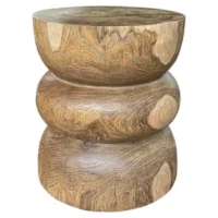 Elevate your space with the natural beauty and timeless elegance of this solid teak wood side table, expertly crafted from a single block of premium-grade teak. Showcasing stunning, organic wood contours and rich natural textures, each table is a one-of-a-kind statement piece that celebrates the unique character of the wood. The design features artfully layered tiers that add depth and dimension, while maintaining a minimalist, sculptural silhouette. The inherent grain patterns, color variations, and tactile quality of the teak are left intentionally unaltered, allowing nature’s craftsmanship to shine through. Durable, functional, and visually striking, this side table seamlessly blends artistry with utility—perfect as an accent piece in both modern and rustic interiors.
