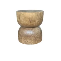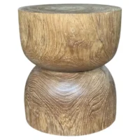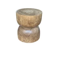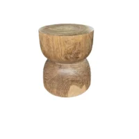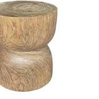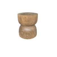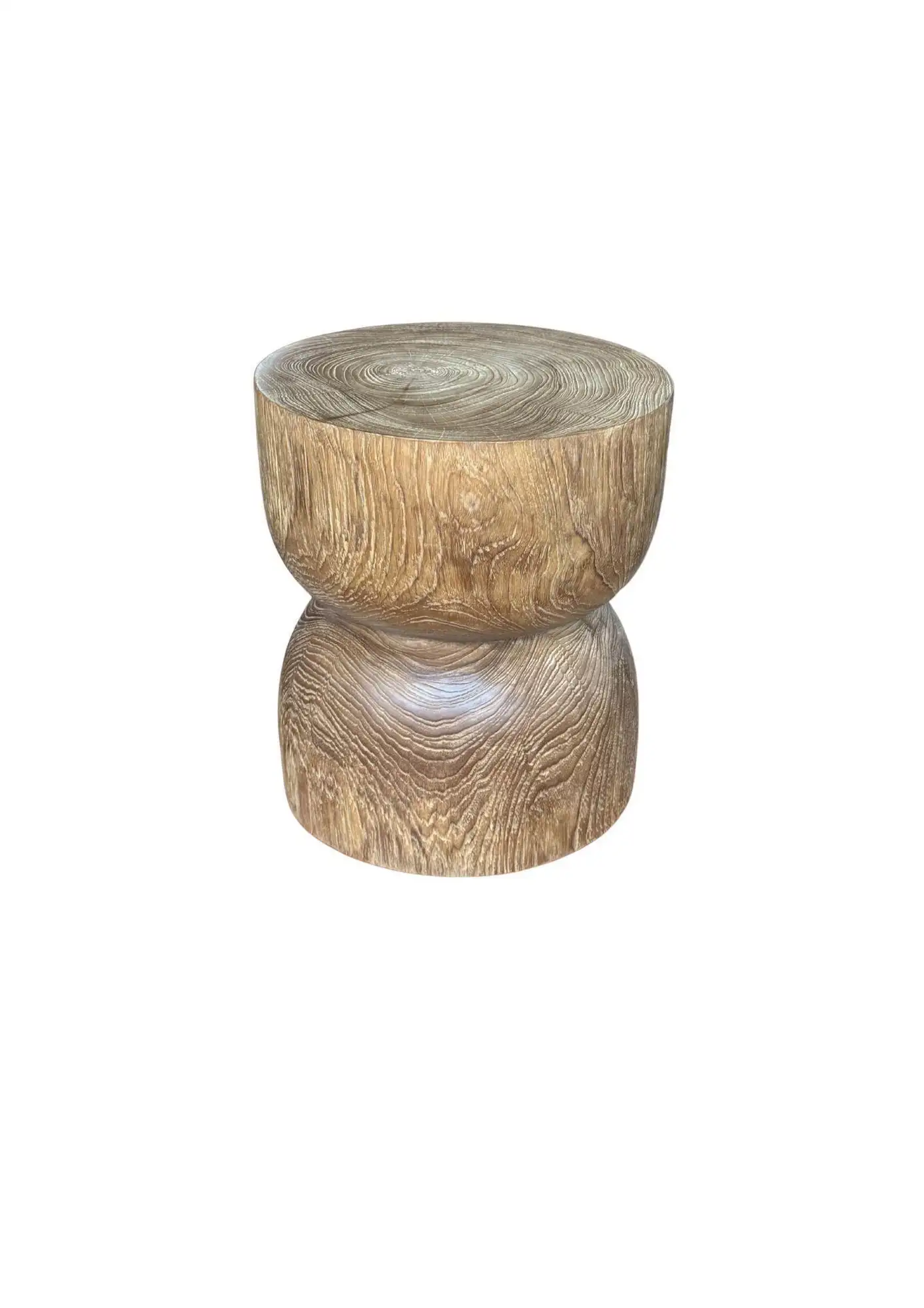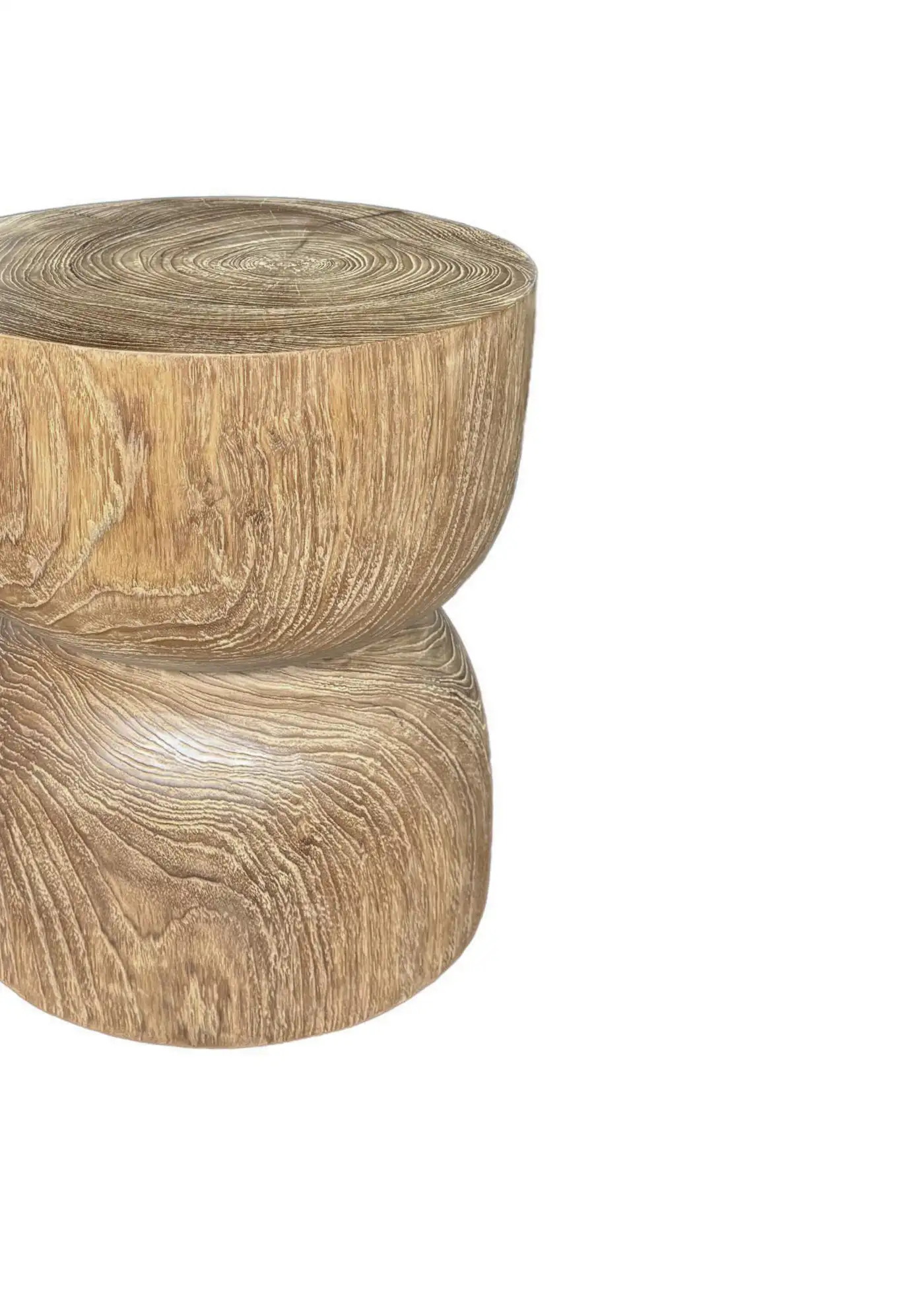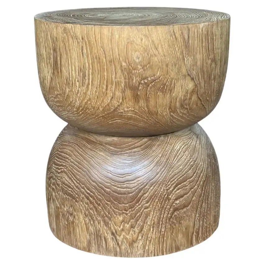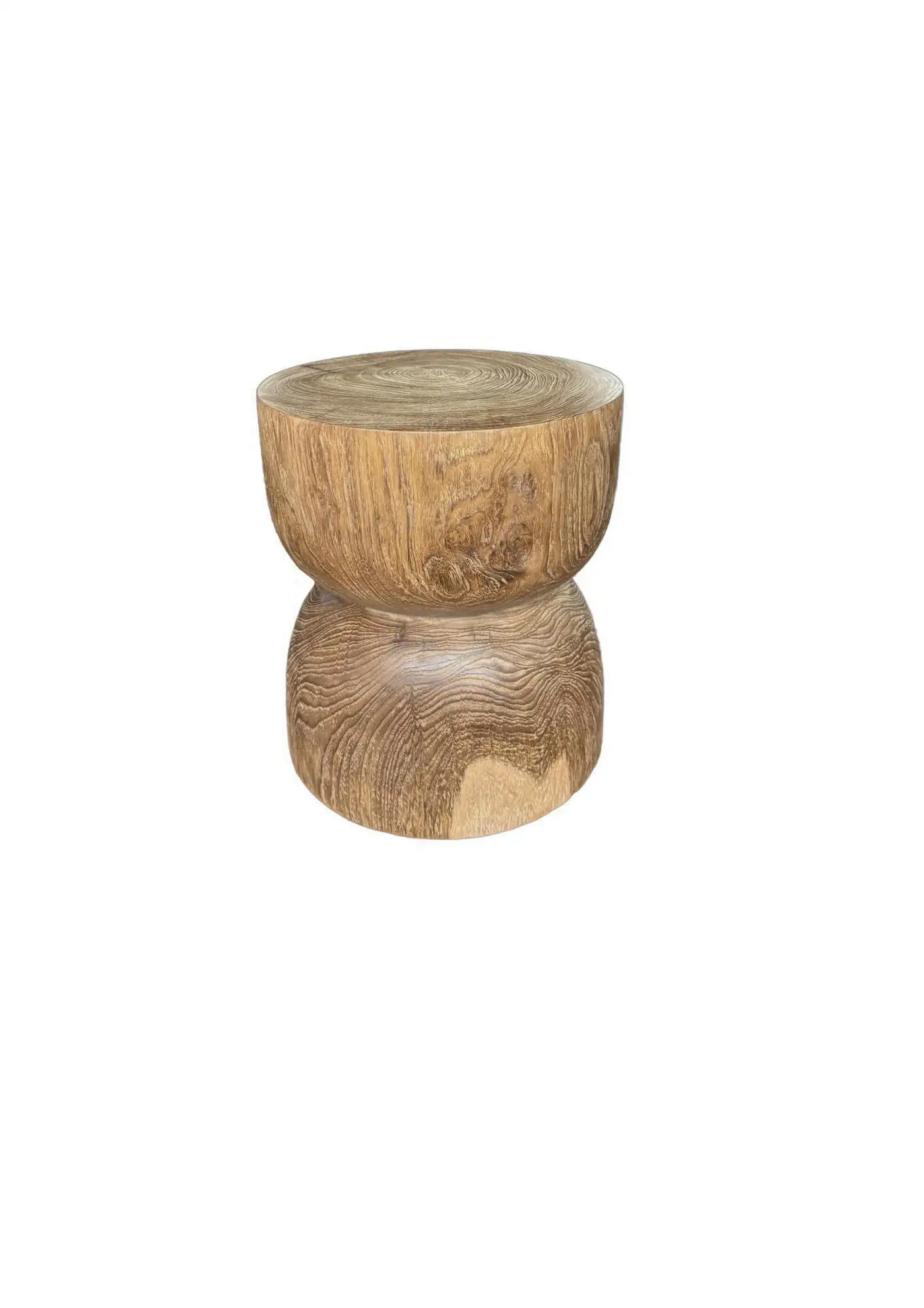 Round Teak Wood Side Table, Natural Finish, Layered Design, Modern Organic