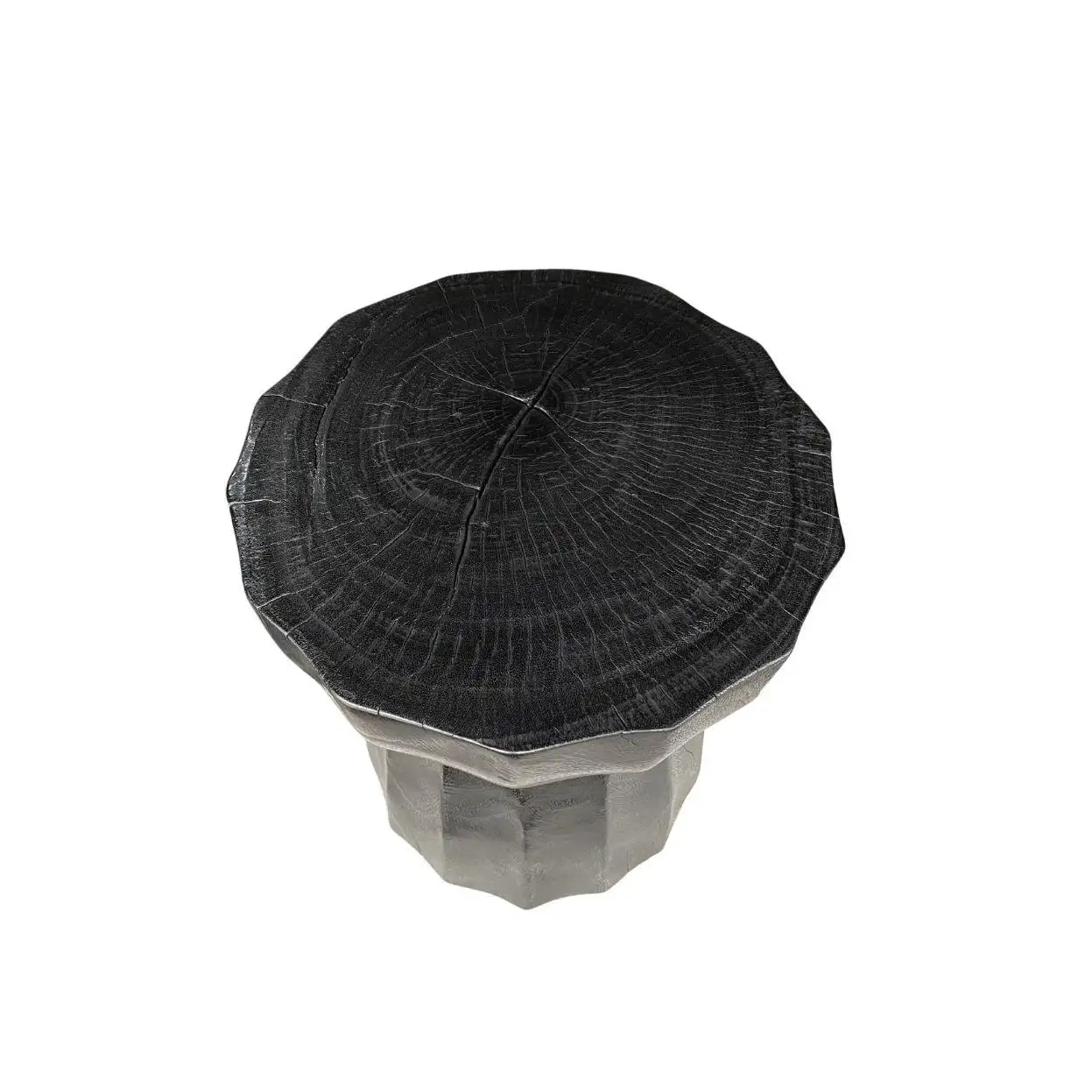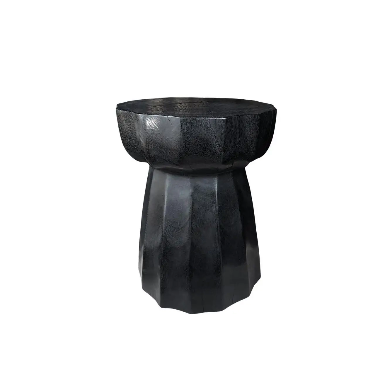 Sculptural Side Table Crafted from Solid Mango Wood Burnt Black Finish