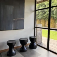 Crafted from decades-old reclaimed Ulin—also known as ironwood—this side table is a striking fusion of natural strength and sculptural elegance. Revered for its exceptional durability and density, the aged timber has been meticulously shaped into a form that celebrates fluidity and organic rhythm. Expertly sanded and smoothed by hand, the surface reveals the tactile richness of the grain beneath. The piece is then skillfully burnt and ebonized, deepening its tone to a rich, charcoal-black that enhances its bold silhouette. The result is a timeless functional sculpture—modern, primal, and quietly powerful—meant to anchor any space with its grounded presence and story of rebirth.