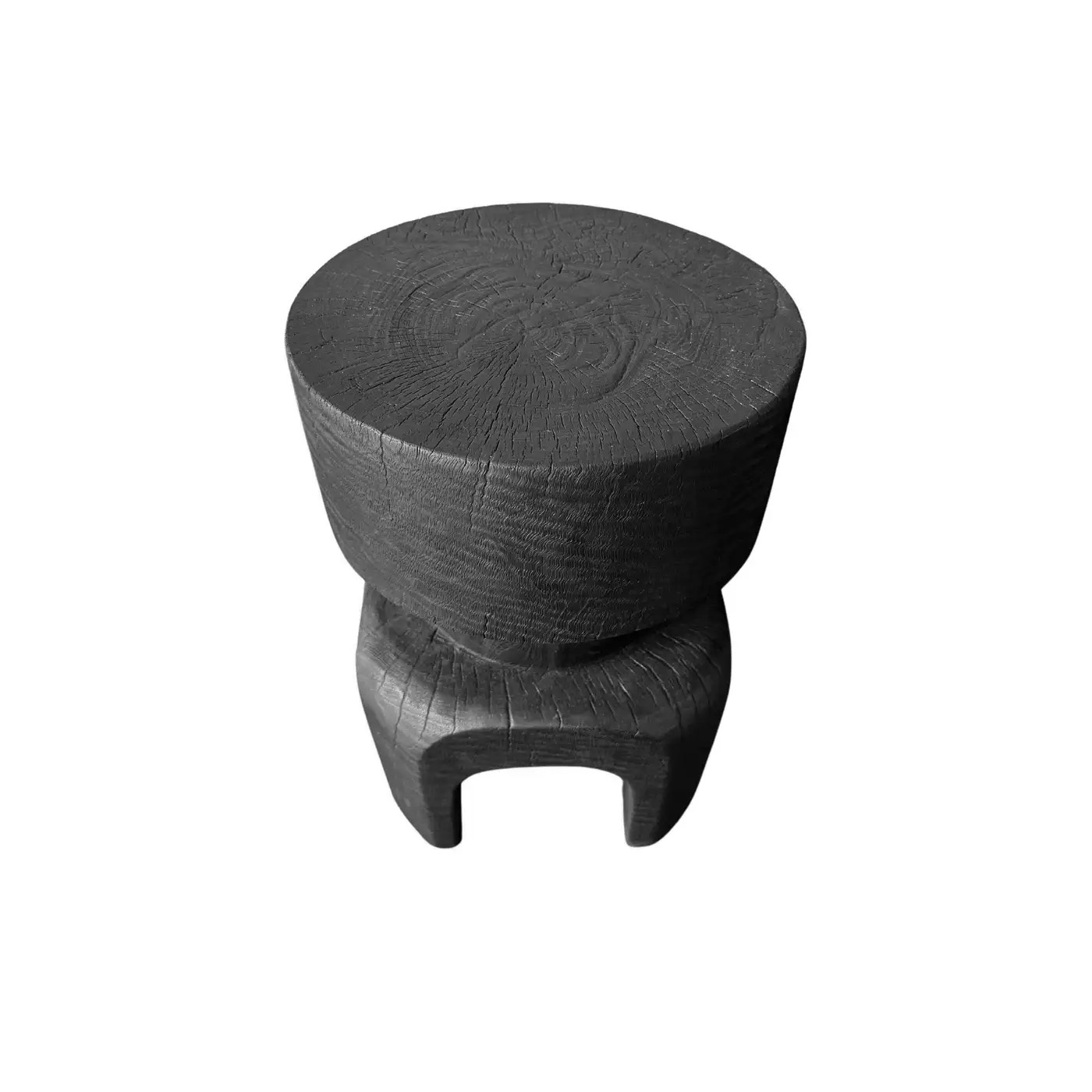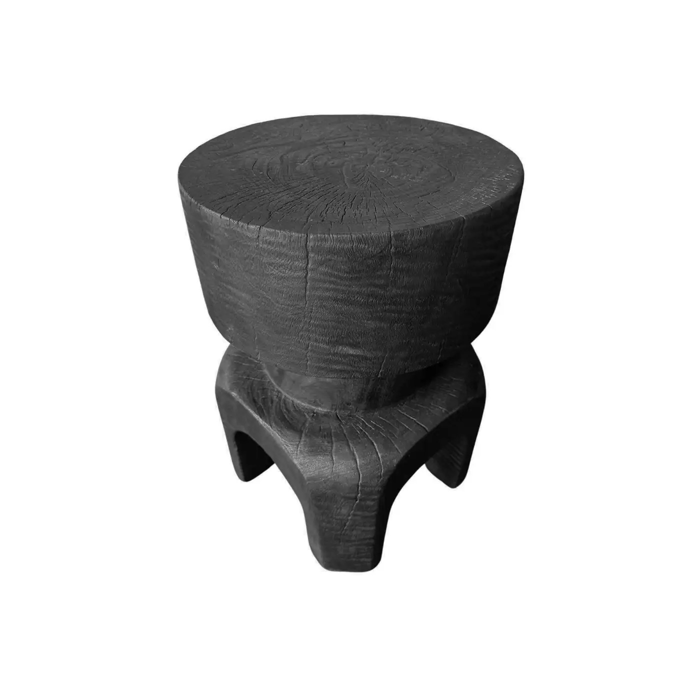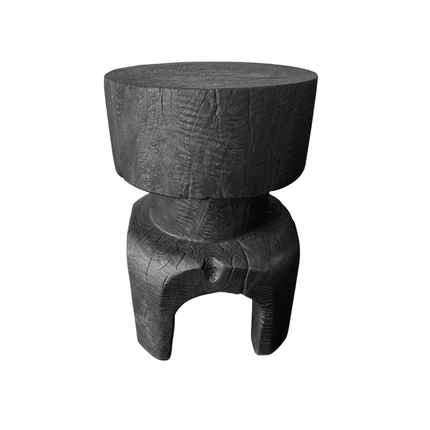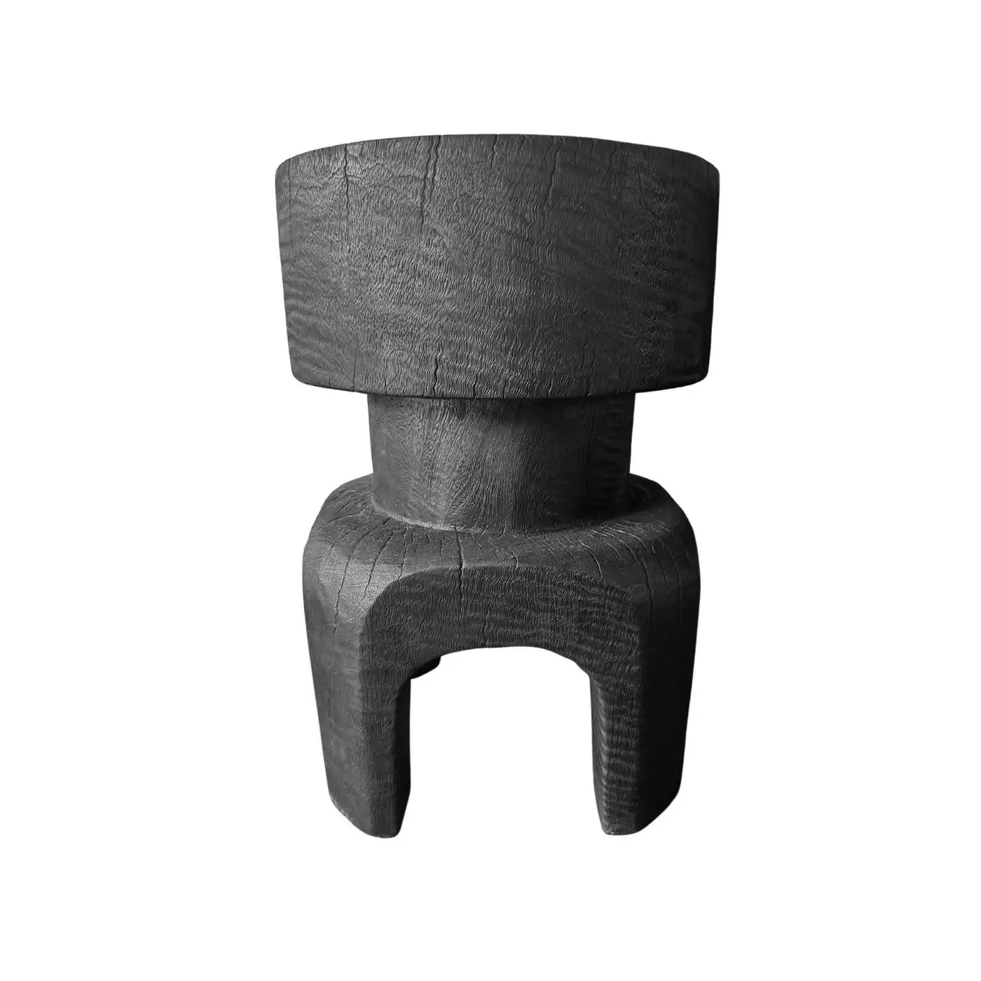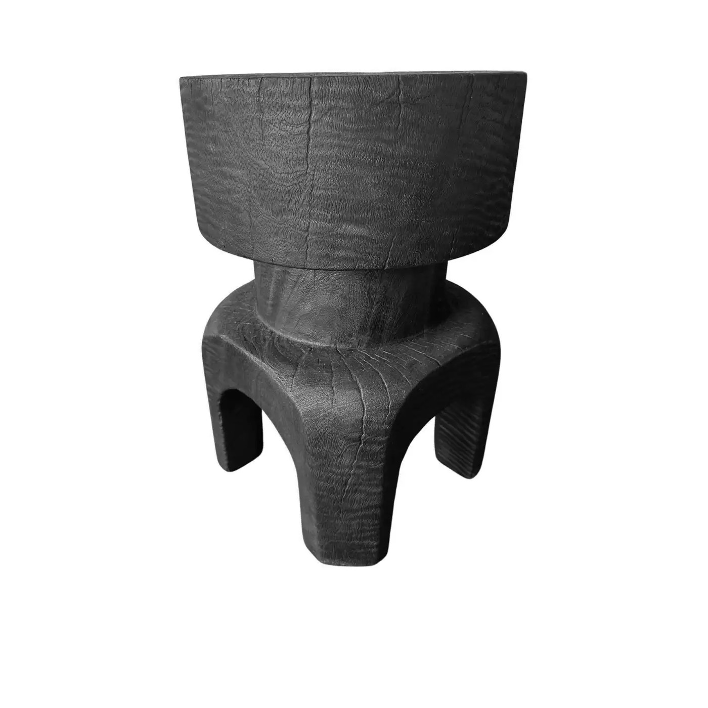 Sculptural Solid Mango Wood Table, Modern Organic, Arched Legs, Burnt Finish