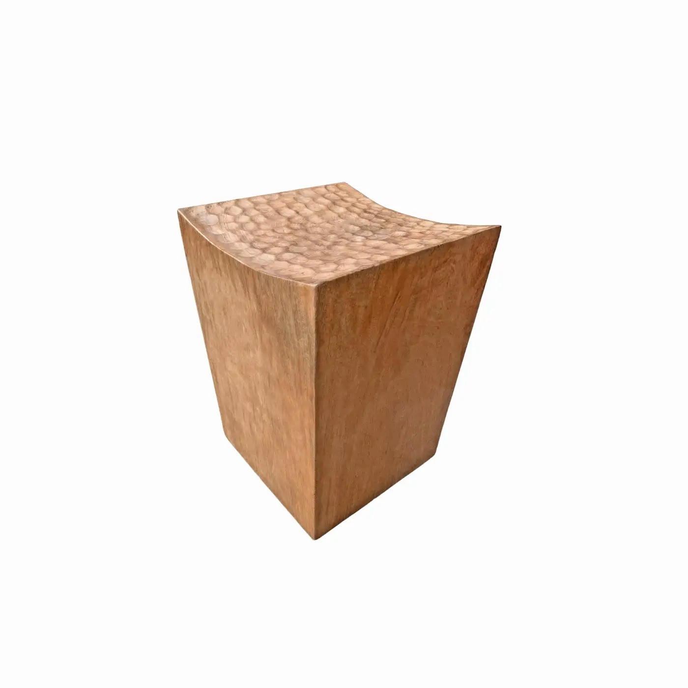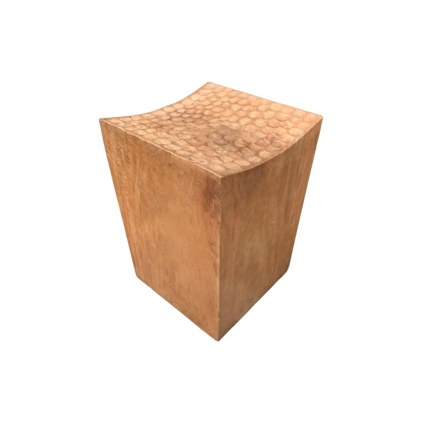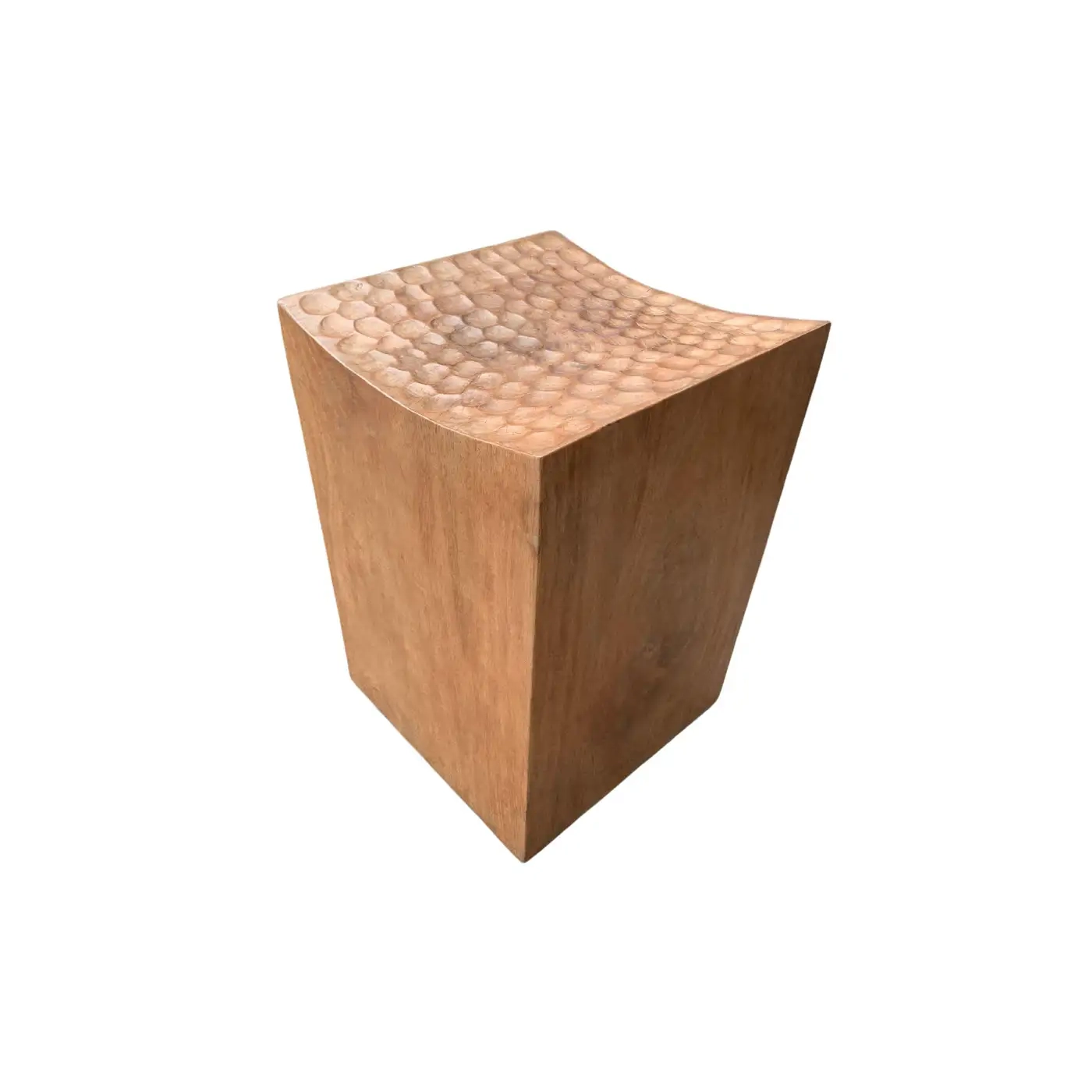 Sculptural Stool Carved from Solid Mango Wood Modern Organic