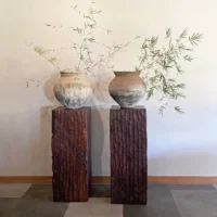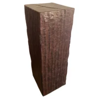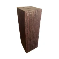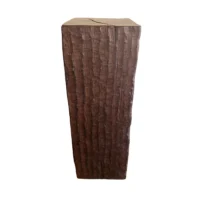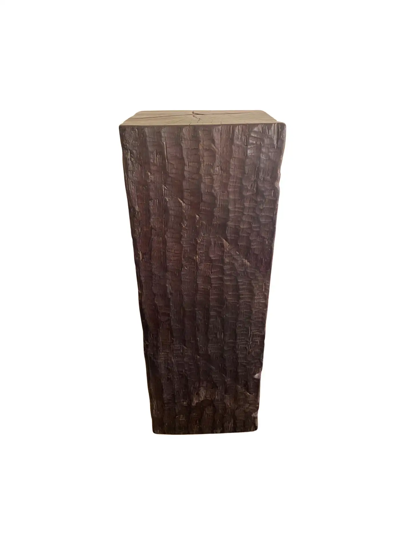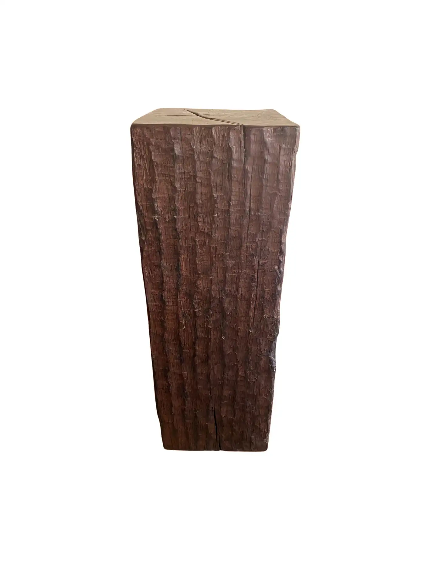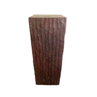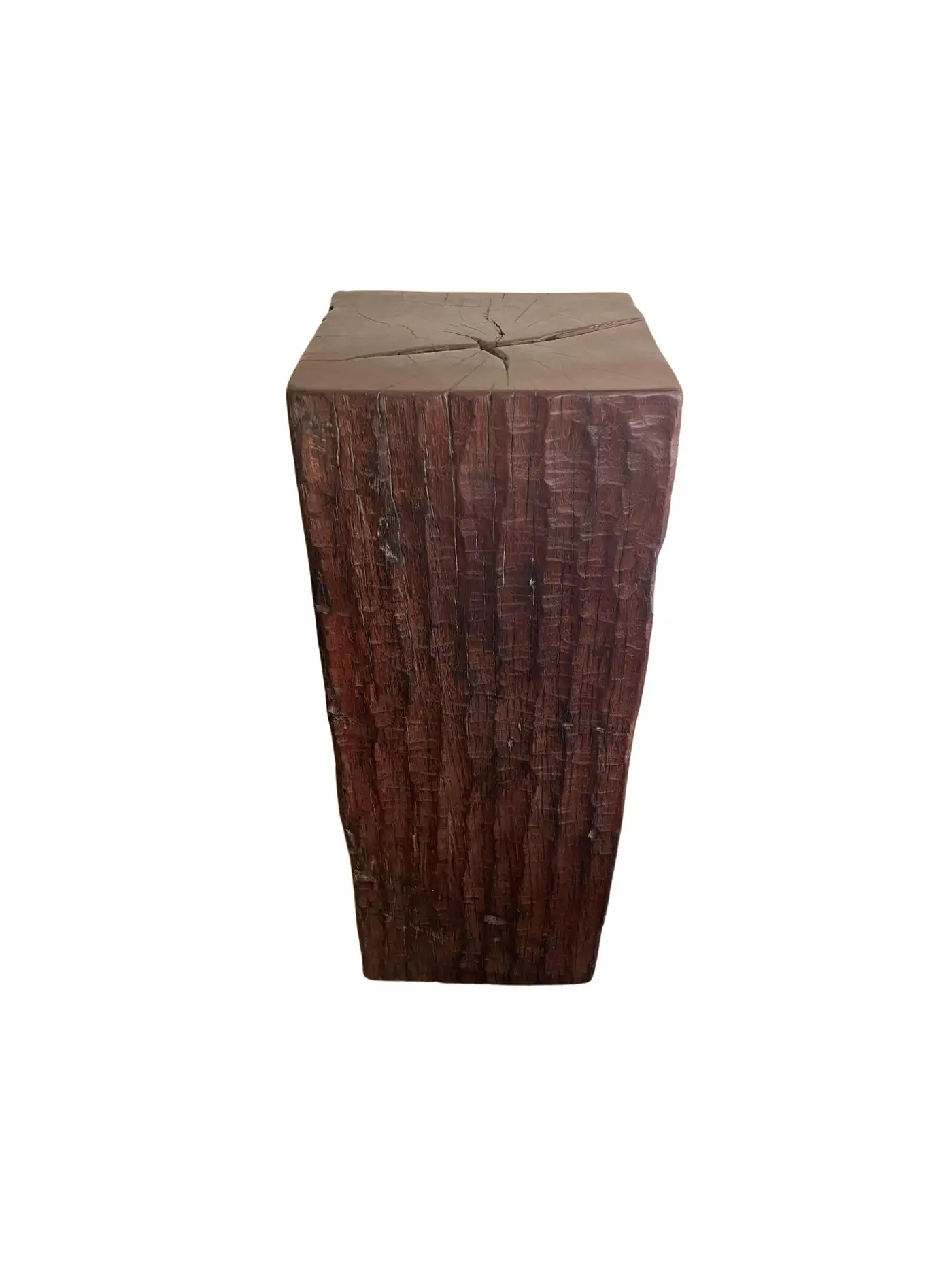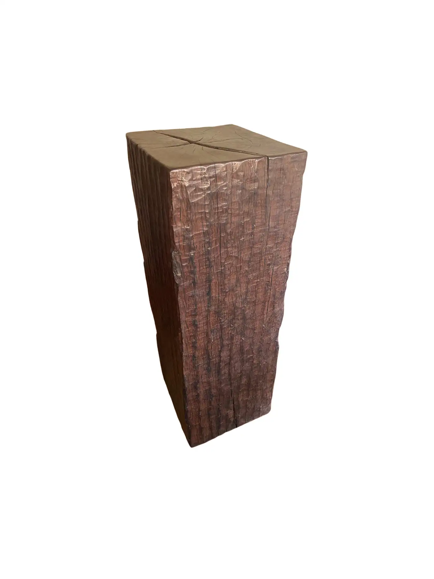 An incredibly heavy and solid Iron Wood Pedestal sourced from Kalimantan, Indonesia. This lovely sculptural object was crafted from a solid block of wood. A raw and organic object with beautiful textures. Indonesian Iron Wood, or “Ulin” as it is commonly referred to is the hardest wood found in the interior rainforests of Kalimantan. The indigenous tribes of the island use this wood in buildings and structures as well as their creative and ceremonial artefacts and tools. It is its near indestructible nature that makes it a popular choice and highly sought after wood. This particular pedestal was reclaimed from the interior structure of an old harbour. For Iron wood to reach 30cm in Diameter it takes on average more than 120 years. This pedestal has a width of 40cm and is 35cm deep, reflecting incredible age. Ulin is incredibly durable, resistant to termites and other pesticides. A wonderful and versatile piece that is beautiful and sculptural on its own, or a wonderful platform to display items.