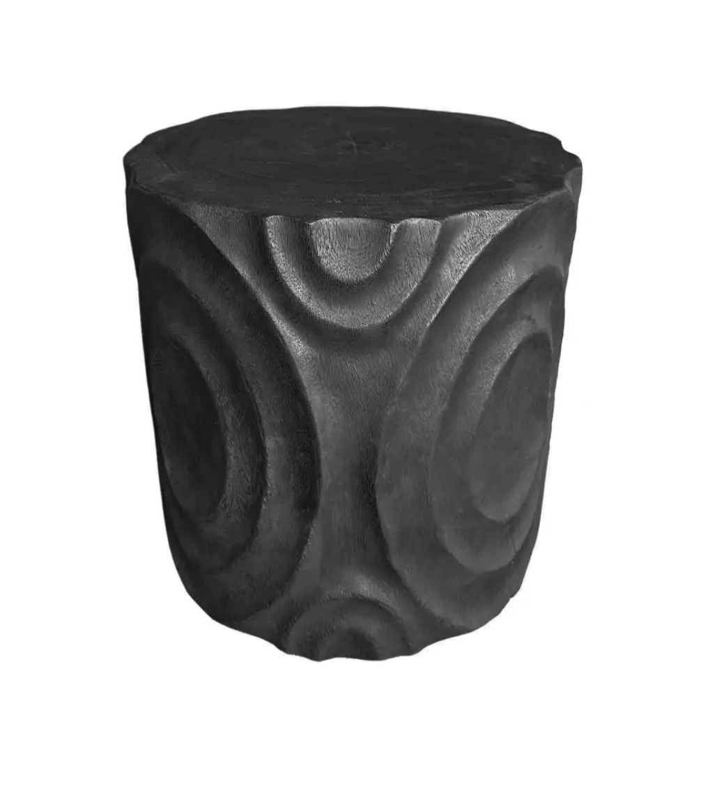 Solid Mango Wood Side Table with Burnt Finish, Modern Organic