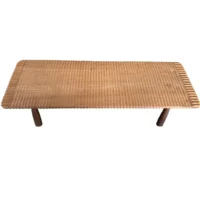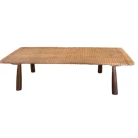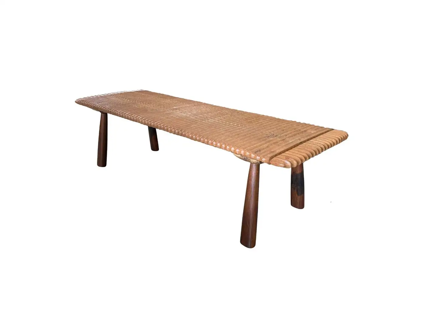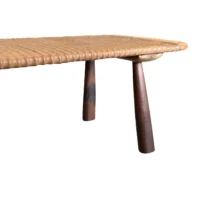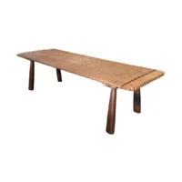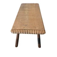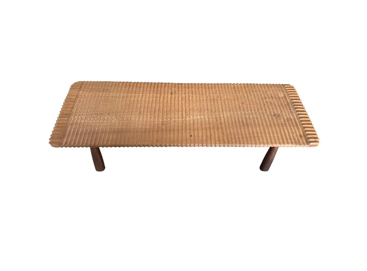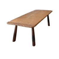This teak wood sofa table is a refined statement piece, defined by its beautifully carved detailing that runs along the tabletop, adding depth, rhythm, and artisanal character. The surface reveals stunning natural wood textures, each grain and variation celebrating the organic beauty of solid teak and ensuring no two pieces are ever exactly alike. The design is anchored by elegantly contrasting legs finished in a rich dark brown tone, achieved through a meticulous multi-staged burning process. This traditional technique enhances the wood’s natural depth while creating a striking visual contrast against the lighter tabletop. Handcrafted with care and precision, this sofa table balances sculptural detail with timeless functionality—perfect for elevating sophisticated living spaces with warmth, texture, and understated luxury.