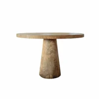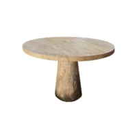 Crafted from reclaimed teak wood, this round table celebrates the natural beauty and character of sustainably sourced materials. Each piece features stunning wood grain patterns and rich, organic textures that make every table truly one of a kind. The smooth, circular tabletop rests on a sturdy, sculptural base—blending rustic warmth with timeless design. Perfect for dining rooms, kitchens, or open living spaces, this table adds an earthy elegance and a sense of authenticity to any home. Built to last for generations, it’s a statement of craftsmanship, sustainability, and natural beauty.
