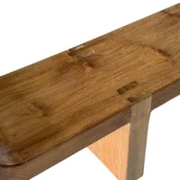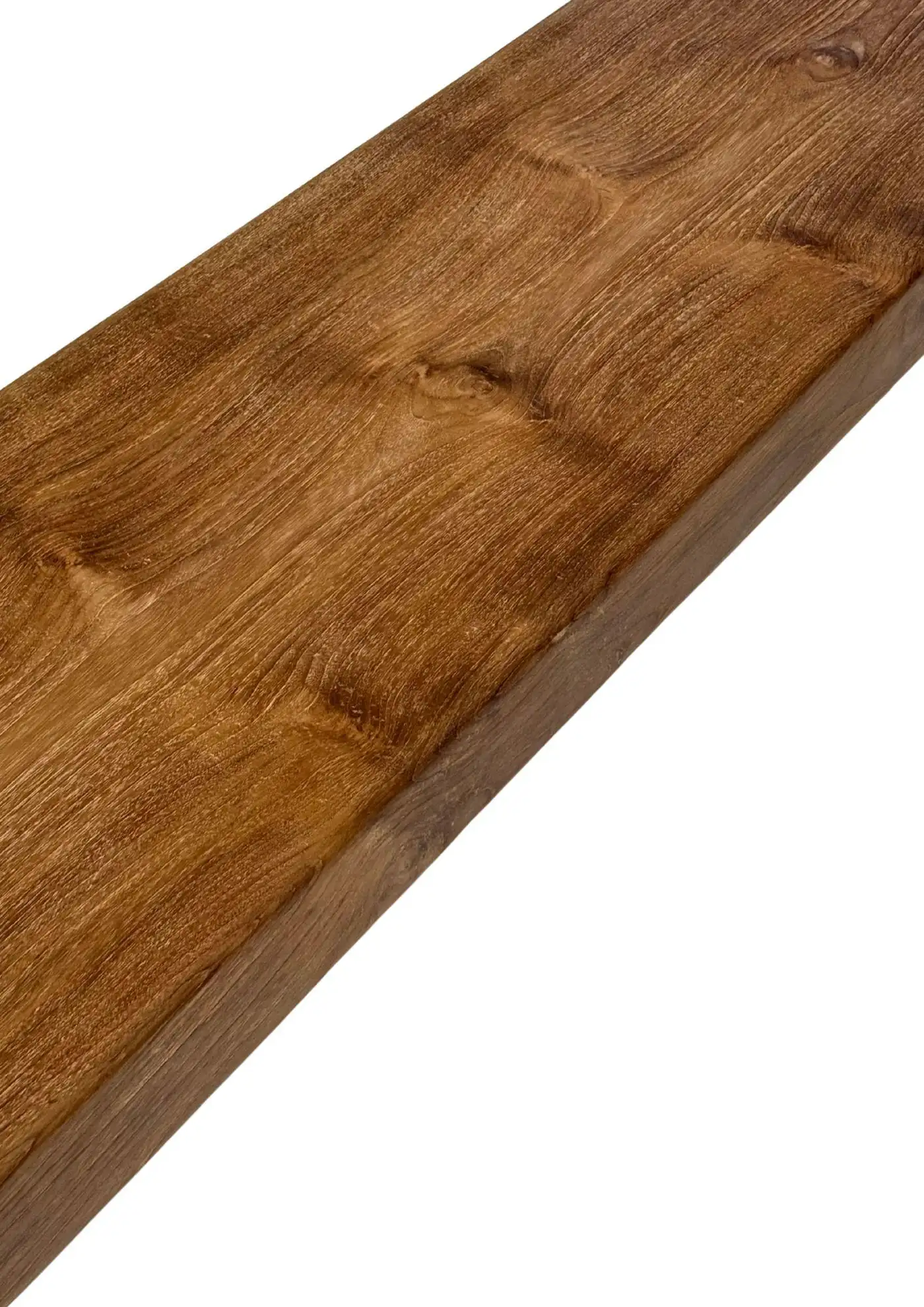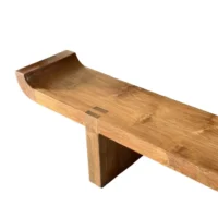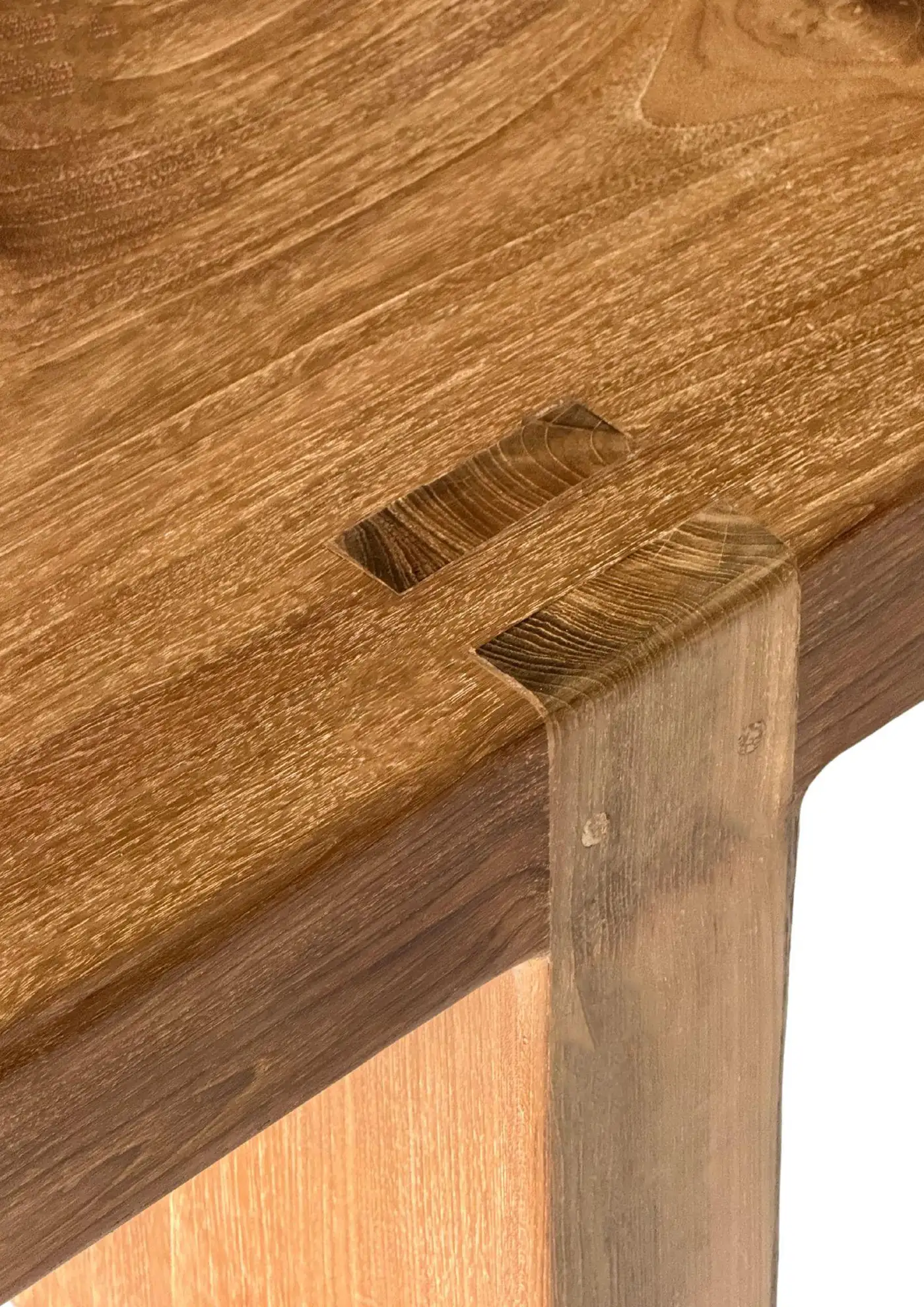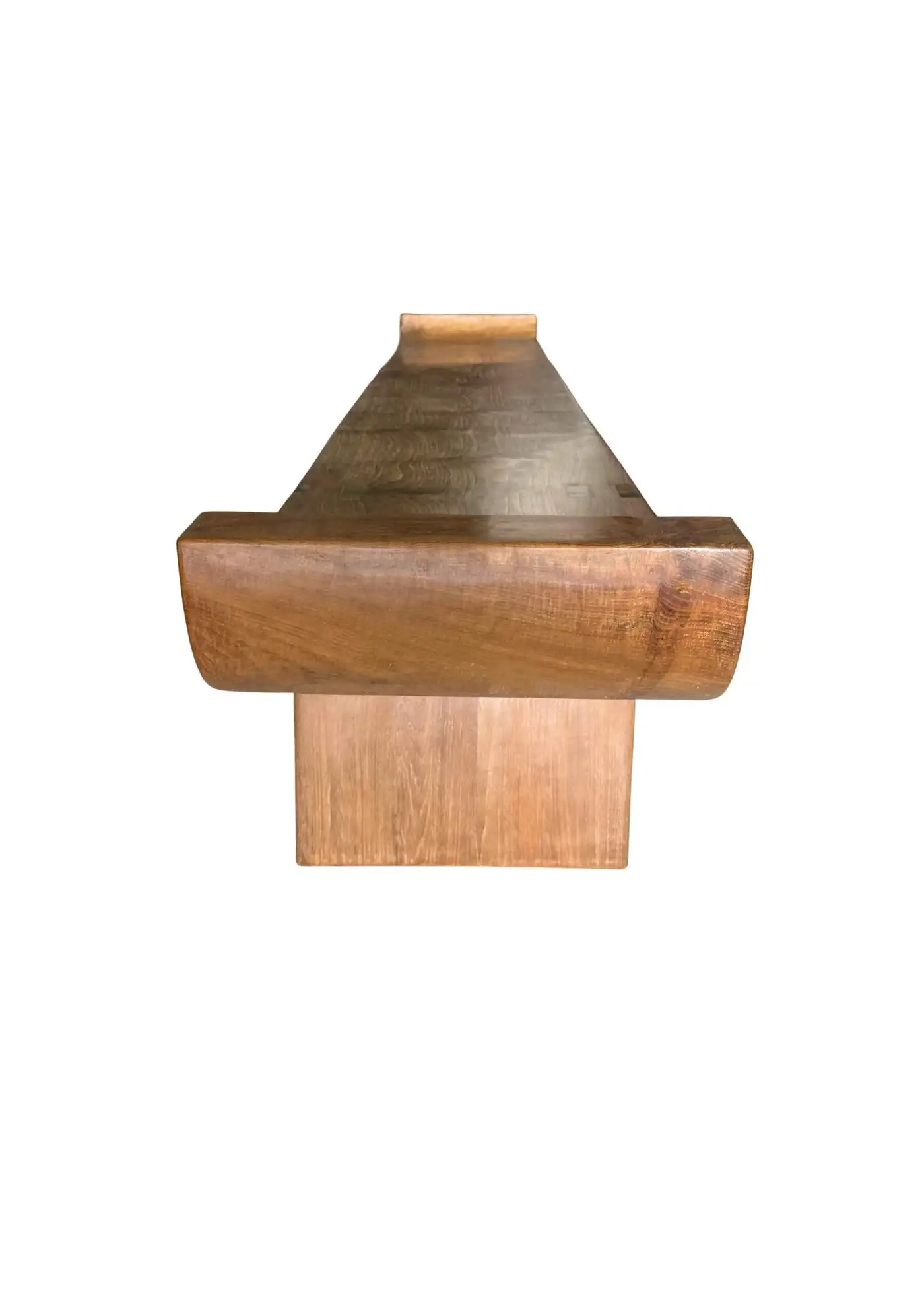 This striking, elongated teak bench is a sculptural statement defined by its refined proportions and expressive natural form. Hand-crafted entirely from reclaimed teak wood, the bench showcases beautifully aged grain patterns, rich tonal variation, and organic textures that tell the story of the timber’s past life. Its very long, linear silhouette is balanced by subtly carved, upturned ends and solid architectural legs, giving the piece both visual lightness and a grounded presence. Each surface is carefully shaped and finished by skilled artisans, preserving the wood’s natural character while highlighting its flowing grain, knots, and gentle imperfections—no two benches are ever the same. Timeless yet contemporary, this bench works effortlessly as a dining bench, entryway statement, or sculptural seating element in refined interiors. Durable, sustainable, and deeply tactile, it is a celebration of reclaimed teak transformed through thoughtful design and meticulous hand craftsmanship.