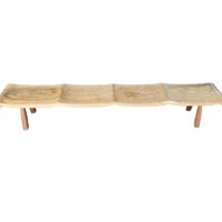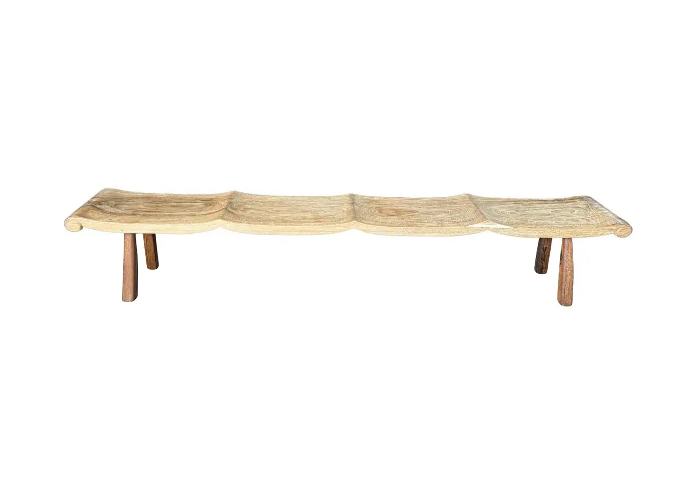 Very Long Sculptural Teak Wood Bench, Modern Organic, Stunning Wood Textures